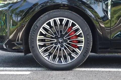 底盘采用前双叉臂+后H臂多连杆独立悬架结构,悬挂摆臂、羊角以及副车架等大量使用铝合金材质,降低簧下质量,提升操控响应速度。四驱版车型搭载保时捷同款的倍适登EDC减震器,配合可变魔毯底盘系统(空气弹簧+EDC),可主动扫描路面情况,实现每秒100次的阻尼实时调节,提前调整悬架参数,提升驾乘的舒适性和操控的稳定性。