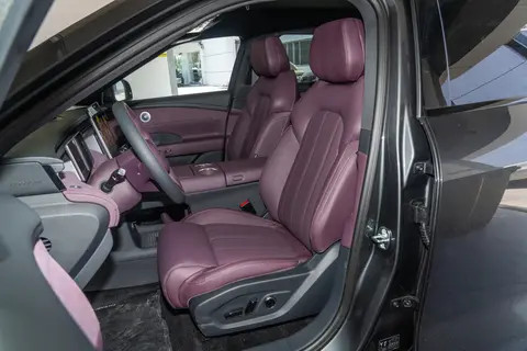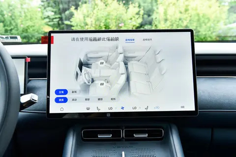 车内配的是云朵座椅,采用Nappa真皮包裹,内部填充物经过优化,支撑性和包裹性都挺好,做上去Q弹舒适。主驾驶座椅支持12向电动调节,并配备加热、通风和按摩功能。副驾驶座椅功能丰富,支持16向电动调节和一键躺倒功能,可调至163度近全平躺姿,同时配备电动腿托和8点式气动按摩系统。后排座椅靠背调节角度支持12度电动调节,能调到129度半躺坐姿,可以找到较为舒适的乘坐状态。并且提供了加热和通风功能,中央扶手内置7升侧开门车载冰箱,支持-6度到50度的精准控温,24度降到到0度小于10分钟。