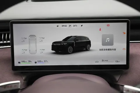 搭载增程混动,由1.5T增程器与电机组成,有两驱有四驱。两驱版本搭载的后置单电机峰值功率215千瓦,峰值扭矩380牛·米,百公里加速时间7.8秒。四驱版前后双电机综合功率350千瓦,综合扭矩570牛·米,零百加速仅需4.9秒。1.5T增程器的热效率达到41%,峰值功率95千瓦,NVH表现优异。试驾感受,增程器启动时的振动和噪音控制得当,车内乘员几乎难以察觉,WLTC工况馈电油耗只要6.11升/百公里。